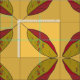 Graphic image of autumn leaf - one side rust coloured, the other a greenish colour. Leaf veins are drawn in. Pattern is created by having leaf tips/stems of four separate leaves touching in centre, creating and "X" pattern. Background may be customised to your taste - defaults to medium yellow.