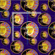 Watercolor Solar Eclipse FABRIC with Golden Bright Sun & Shimmering Moon with Dancing Stars swirled over the dark purple background. This pattern was designed for an international eclipse pattern contest where it placed in the top 25 out of hundreds of entries.