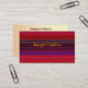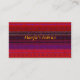 This business card advertises a fabric shop which specialises in fabrics for fashion and home decor, sewing machines, notions and accessories. This colourful fine art design features an image of a colourful abstract pattern of woven horizontal bands. The brilliant colours of red, purple, blue and black seem to glow. The reverse side has all the pertinent text which can be customised to suit your needs.