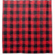Fabric texture with grid pattern, red squares and black squares.