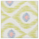 Fabric with vintage green ikat pattern. Fabric with pattern in Boho style. Abstract peacock eyes pattern