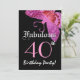 Fabulous 40th Birthday Fuschia Butterfly W1800 Invitation