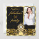Fabulous 50 Black Gold Faux Diamond Photo Party Invitation