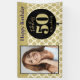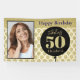 Add a photo to this simulated glittering gold banner to make it special any 50 year old. One large black balloon has a customised name and age on a pattern of little gold playful floating balloons.