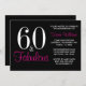 Invite your guests in style with this modern fabulous and 60 birthday party invitation! Shown in black and fuchsia pink. Perfect for a woman's 60th birthday celebration! Easily customise with your party information.