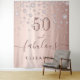 A trendy and glamourous 50th (or any age) birthday tapestry. A girly rose gold coloured background decorated with rose gold and pink faux diamonds. With the text: 50 and fabulous. Personalise and add a name. Brown coloured text. The word Fabulous is written with a modern hand lettered style script with swashes.