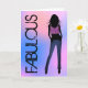 Fashion Girls – FALS100 © Sunny Mars Designs. Cool, cute, modern, trendy, girly custom greeting card with the silhouette of a gorgeous young glamourous diva or model modelling and posing in her stylish blue jeans.