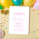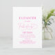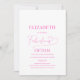 The design shows a custom quinceanera invitation in pink typography and classic whimsical calligraphy with white background. The design is absolutely classic and unique and will be an elegant item for your kid's special day.