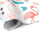 Fifties flamingos with retro decorations of the time such as an atom and random rectangles. Geometric bits and pieces were very in.