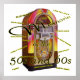 Fabulous retro art deco juke box with 50s and 60s music titles all over and memories across front