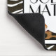 The product itself is good quality and I like the simplistic elegant design. The only criticism I have is that it's not really accurately represented by the picture provided. I thought that the mousepad would be a non-porous or laminate surface and as such the gold writing would actually shine against the soft pink. However the design is printed on a thick fabric surface, so the gold colour is just the shade of gold but doesn't stand out from the pink background. (See picture)