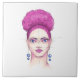 Sketch of the face of a girl with pink hair with pencil lines for building a face, a quick sketch of the face. The pencil sketch depicts a young, energetic woman with lush, curly hair pulled back into a high ponytail and large, almond-shaped, slanting eyes. She is attractive in its sharpness and clarity. In general, the portrait conveys a sense of purposefulness, composure and integrity of the individual. Please note: the drawing included my sign irina ikar. Faces Ceramic Tiles Collection. If you want ceramic tile with portrait in this style, please contact me direct.
