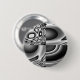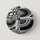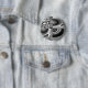 This button features a black and white pattern that can resemble many shapes and forms but the whole image looks like an evil face with dark staring eyes and a wide grin.