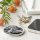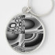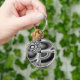 This keychain features a black and white pattern that can resemble many shapes and forms but the whole image looks like an evil face with dark staring eyes and a wide grin.