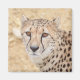 Witness the captivating gaze of a cheetah up close, its face framed against a backdrop of sandy desert hues. A moment of beauty in the heart of the wilderness