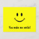 face postcard with text "You make me smile!" on the front