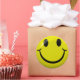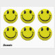 shining, cute happy face stickers yellow with bold black features. Put on a happy face with these bright happy stickers! Give them out to your friends, remind them to put on a happy face and spread some happiness! Shown is the large size sticker. A smaller sticker is available which is great for envelope seals also!