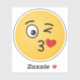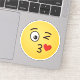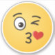 A kissing emoji. One eye is open, the other is winking. A heart is shown leaving the kissing mouth.