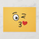 A kissing emoji. One eye is open, the other is winking. A heart is shown leaving the kissing mouth.