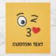 A kissing emoticon. One eye is open, the other is winking. A heart is shown leaving the kissing mouth.