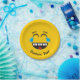 A laughing emoticon that is laughing so much that it is crying tears of joy. Custom text.