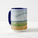 "Our daily bread grows here" mug in bright tone. Summer fields and blue sky. It will fit in perfectly with most interior design styles, especially modern farmhouse style.