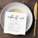 The current trend for stylish weddings is to regale your guests with chic, clever decor such as these facts about us napkins. Add your engagement or courtship details under the minimalist black typography on a modern wedding napkin.