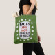Bold text reading "Facts Are Not Tricky Things" is centred against a green background. The black and dark orange text sits on a white rectangle with large textured white dots around it, providing a playful contrast against the solid colour backdrop.