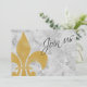 Jazz up your New Orleans party with these original invitations featuring a faded gold Fleur de lis symbol on a newspaper background on both the front and the back. JOIN US is written on the front in an artsy script font. Add your party information using the template. Click CUSTOMIZE IT to change the font and text placement on the back. Great for your New Orleans wedding event!