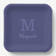 Faded Navy Blue Name and Initial Monogram Paper Plate