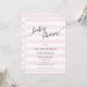 A modern, simple stripe design in pale pink. See collection for coordinating games, thank you notes, stickers and more.
