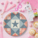 Faded Red Blue Star Quilt Block Floral Paper Plate