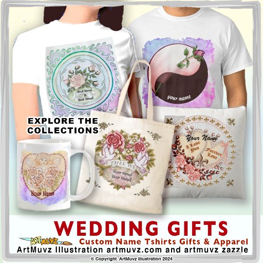 Wedding gifts, apparel,bride,groomDesigned by ArtMuvz Illustration