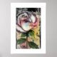 A single pink and white rose with red edges on a patterned background of soft hues of navy, gold, yellow, white and grey. Complements most any style. Do consider an upgrade to canvas for a more impressive presentation.