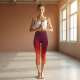 VIVIDLUXE Modern Aesthetic. Move with the warm energy of glowing embers in these high-waisted yoga capris. The Fading Embers design features a swirling gradient of warm shades, flowing from deep burgundy to soft peach along the legs. This dynamic, abstract pattern inspires warmth and focus, making them perfect for yoga, fitness, or mindful movement.