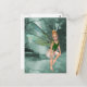 A fantasy postcard depicting a sweet little fairy with blonde hair. She wears a cute little fantasy fairy outfit of green and gold dragonfly wings and a skirt made from petals. She's floating on the air with other glowing fairies and magic all around her.