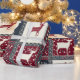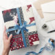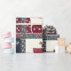 This seamless Fair Isle patchwork pattern wrapping paper captures the cosy charm of a knitted Christmas sweater. Featuring alternating blocks in red, off-white, and dark blue, it includes reindeer silhouettes, snowflakes, and intricate geometric borders in contrasting colours. With its rustic woven texture, this design is perfect for holiday décor, Nordic-inspired crafts, farmhouse style, and vintage winter aesthetics. A festive, timeless pattern that brings the warmth of handmade tradition to the season.