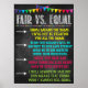 Makes great inspiring & thought-provoking art decor. An explanation of the difference between fair and equal. A great, colorful, eye-catching graphic that will capture kid's attention and remind them fair isn't always what it looks like! Bright colors against a faux chalkboard background.