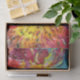 Vibrant,colourful,original watercolor- acrylic painting in bright red,green,yellow,blue,pink,white colours with golden and silver foil by Bulgan Lumini (c)