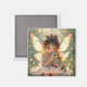 A cute personalized magnet featuring a sweet little fairy girl holding her baby dragon. Cute anime chibi illustration.
