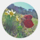 Fairy with red wings and purple dress Smelling in the yellow Daffodils Flowers Fairy and Photo By Artist Sandy Closs Fairy, fairies, pixie, pixies,fantasy,flowers, butterfly , butterflies, red, yellow, purple,spring fairy-tale, fairyland