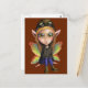 An adorable large eyes fairy aviator is sitting, taking a break from her flying. This fairy is wearing a protective cap, goggles on the top of her head, a jacket, boots, and knee-pads. She has the cutest large green eyes with tints of copper. Her beautiful butterfly type wings have a spectrum of colours such as red, yellow, green, and blue. Her pointy ears resemble that of an elf. Perfect for anyone into fantasy, flying, or simply onto the extremely cute!
