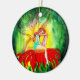 FAIRY DREAMING ON A RED FLOWER ,VIBRANT RUBY CERAMIC TREE DECORATION