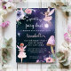 Make your daughter's birthday party a magical adventure with our customisable fairy-themed birthday party invitations! Featuring beautiful fairies set on an enchanted night sky and floral background in shades of dark blue, pink, and purple, as well as sprinkles of faux fairy dust, these invitations are perfect for any little girl who dreams of a fairy land-themed celebration.
