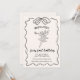 This black-and-white minimalist invitation features a delicate illustration of a fairy and a pixie, framed by a simple yet elegant bow-adorned border. The design is whimsical yet understated, playful yet sophisticated, making it perfect for parents who love a refined aesthetic with a sprinkle of childhood magic.