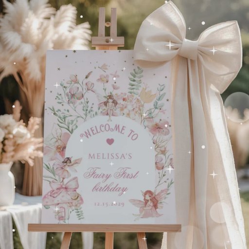 Fairy First Birthday Whimsical Purple Welcome Poster