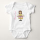 Cute baby girl's one piece bodysuit with tutu and sweet graphics of a little girl fairy all dressed up, with wings and a garland of flowers. Pink text running up the left side reads Flower Girl, and can be personalized to read what you want.