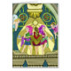 The Gothic architecture includes arched windows with stained glass elements and a base of three roman columns. Contained in the golden antique bottle are three members of the "wee folk" holding magical spheres. The trio in this painting are inspired by the Greek statue "The Three Graces. They are clothed in my interpretation of the draped clothing of ancient Greek and Roman citizens. The winged beings on either side are there to assist them.