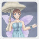 Fairy Holding Mushroom Umbrella in the Rain Square Sticker
