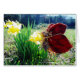 Fairy with red wings and purple dress Smelling in the yellow Daffodils Flowers Fairy and Photo By Artist Sandy Closs Fairy, fairies, pixie, pixies,fantasy,flowers, butterfly , butterflies, red, yellow, purple,spring fairy-tale, fairyland